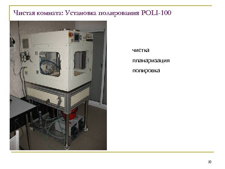 Чистая комната: Установка полирования POLI-100 чистка планаризация полировка 20