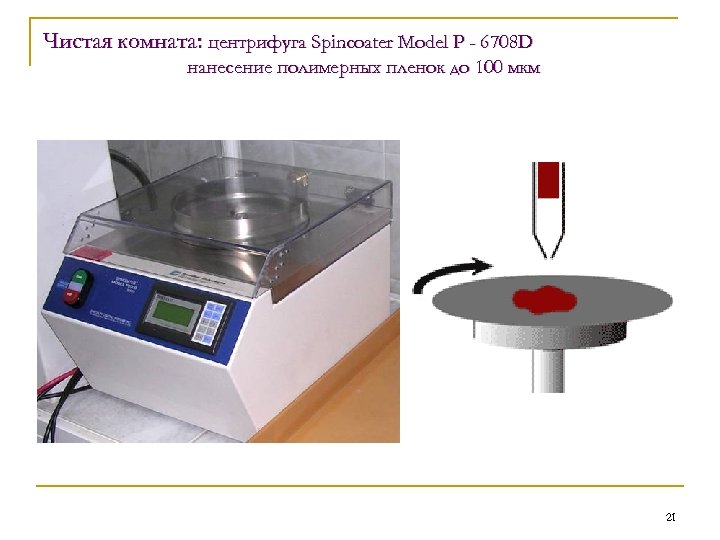 Чистая комната: центрифуга Spincoater Model P - 6708 D нанесение полимерных пленок до 100 мкм 21