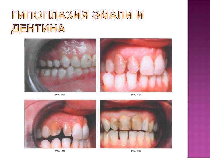адамантома (син. : капли эмалевые, эмалоид, жемчужины - эмалевые) - шарообразные образования эмали, прикрепленные к зубу, чаще в области его шейки, или свободно расположенные в прилежащей соединительной ткани; аплазия дентина – проявляется в образовании многочисленных маленьких участков (межглобулярные пространства), в которых не откладывается кальций; аплазия эмали – проявляется образованием эрозий на поверхности; гипоплазия дентина - проявляются в образовании многочисленных маленьких участков (межглобулярные пространства), в которых не откладывается кальций; гипоплазия эмали - проявляется образованием эрозий на поверхности коронки; изменение цвета эмали
