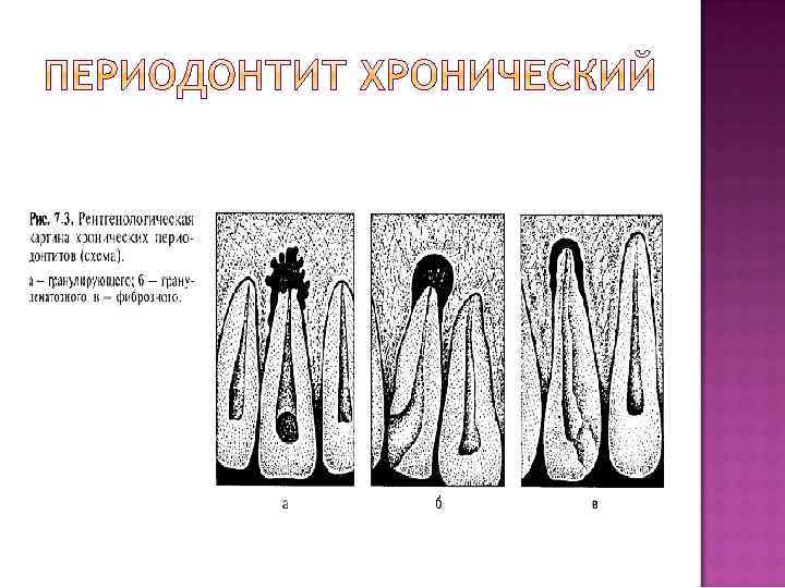 Фиброзный периодонтит равномерном расширении периодонтальной щели; компактная пластинка стенки лунки четко видна на протяжении корня, или наблюдается перестройка компактной пластинки на ограниченном участке;