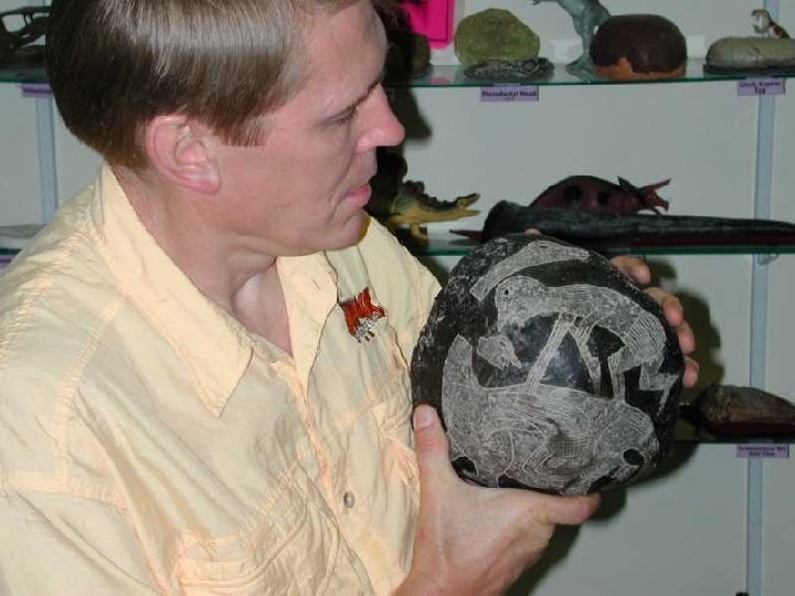 Pre-Inca Indian riding dinosaur 前印加印第安人 騎在恐龍 上面 此石出現 於祕魯 伊卡省 Cabrera 博士 在伊卡省 博物館 有大約 11, 000 塊 類似收藏