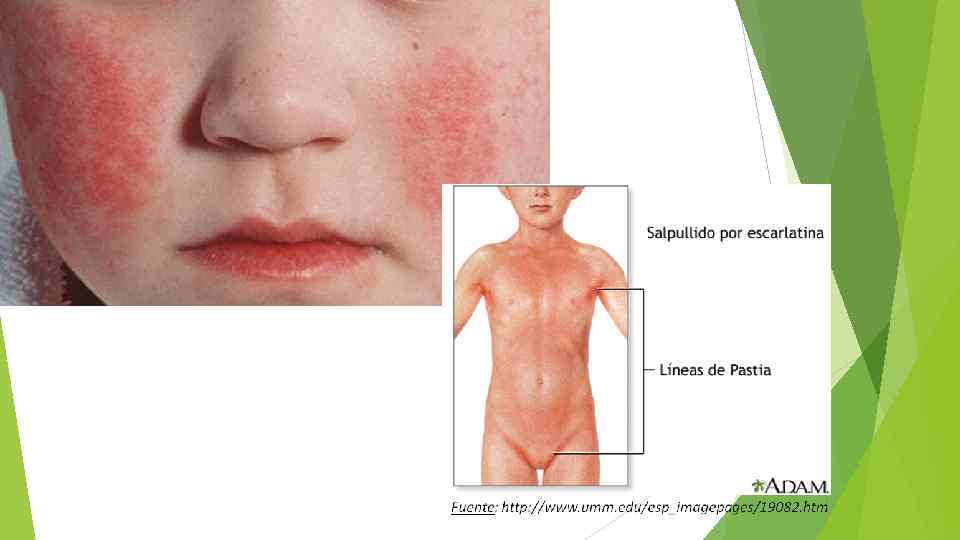 Скарлатина Резервуаром и источником возбудителя скарлатины, как и в случае всех стрептококковых инфекций, является человек: больной или носитель. Больные скарлатиной представляют наибольшую опасность в первые несколько дней заболевания, вероятность передачи инфекции полностью исчезает спустя три недели после развертывания клинической симптоматики. Входными воротами для возбудителя скарлатины служит слизистая оболочка зева, носоглотки, иногда (крайне редко) половых органов. Бывает, что бактерии проникают в организм через повреждения кожного покрова. Лечение скарлатины обычно производится на дому, помещению в стационар подлежат больные с тяжелыми формами течения. Пациентам назначают постельный режим на 7 -10 дней, рекомендуют щадящую диету (пища полужидкой консистенции) на период выраженных ангинозных симптомов, не забывая о сбалансированном витаминном составе рациона.