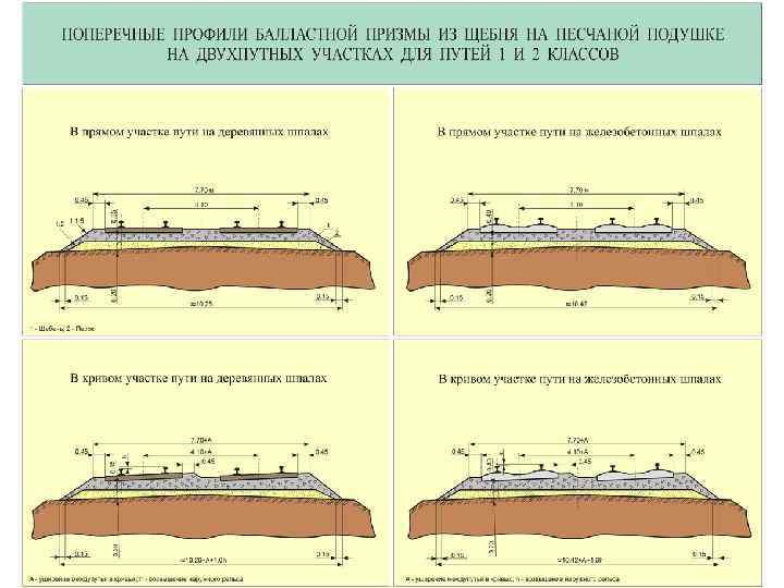 Поперечный профиль балластной призмы