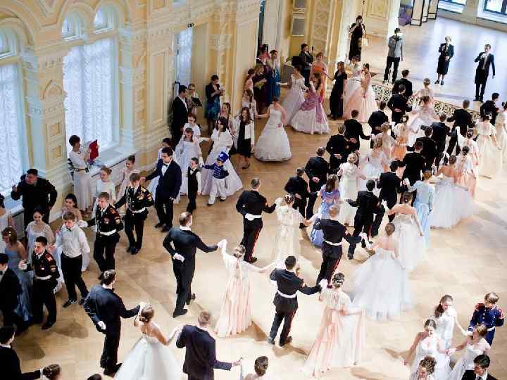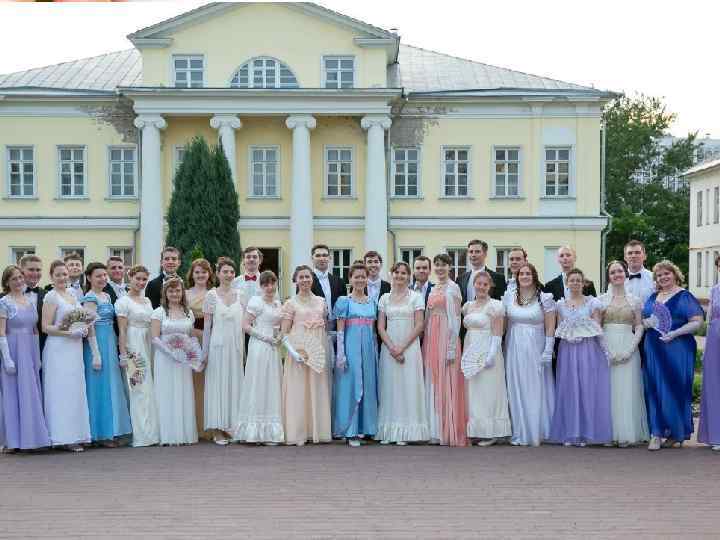 Балы и танцевальные вечера • Количество: За 9 лет более 130 балов и танцевальных вечеров, в том числе 38 детских, юношеских и семейных и 9 баловспектаклей. • Места проведения балов: музеи, усадьбы, дома культуры, парки, вузы, школы и т. д. • Команда единомышленников – сценаристов, режиссеров, танцмейстеров, хореографов, художников, артистов • Уникальный творческий проект с авторским сценарием и тематическим содержанием