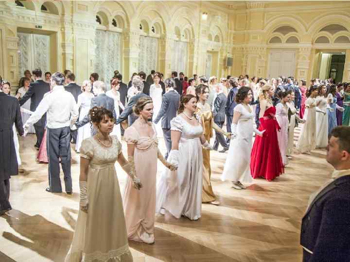 Исторический бальный танец в России • Российская империя, XVIII – начало XX вв. – расцвет бальной культуры • Советское время – изменение формы • Конец 1980 -х гг. – начало возрождения традиций • 2000 г. - интенсивное развитие бальной культуры (студии, балы, научная работа, фестивали)