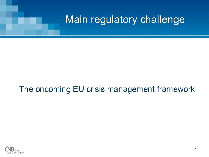 Main regulatory challenge The oncoming EU crisis management framework 12