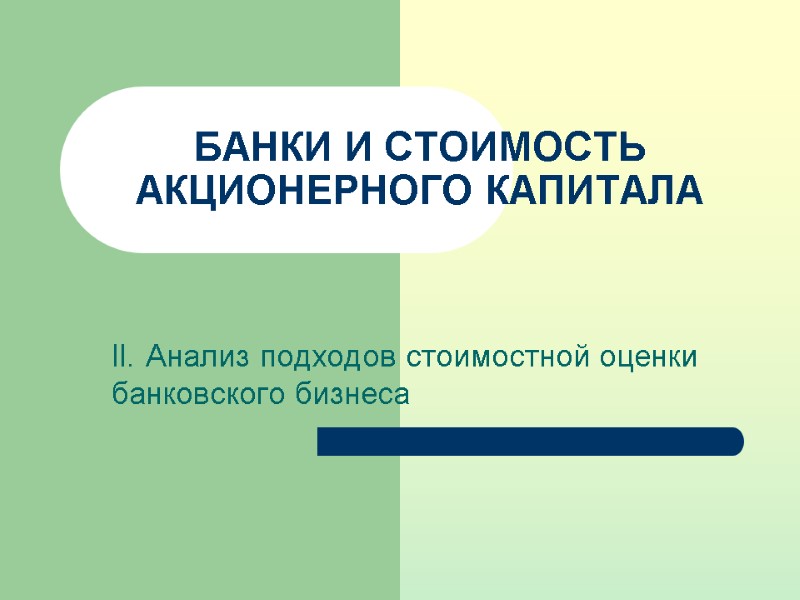 БАНКИ И СТОИМОСТЬ АКЦИОНЕРНОГО КАПИТАЛА II. Анализ подходов стоимостной оценки банковского бизнеса