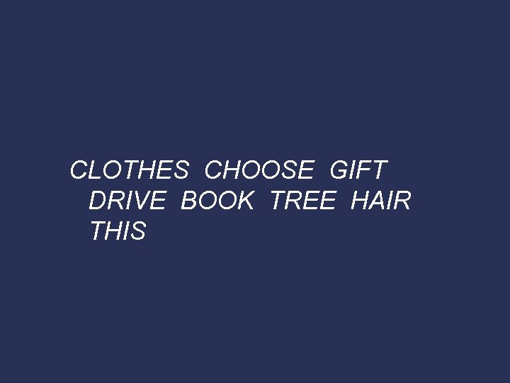 CLOTHES CHOOSE GIFT DRIVE BOOK TREE HAIR THIS