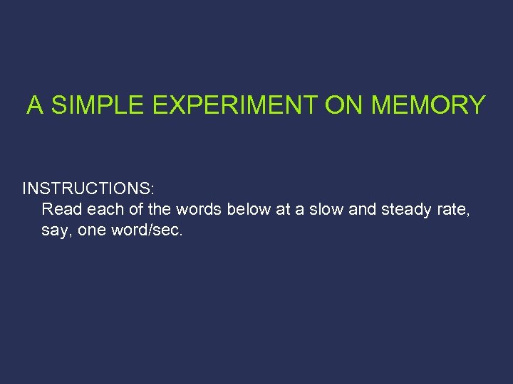 A SIMPLE EXPERIMENT ON MEMORY INSTRUCTIONS: Read each of the words below at a slow and steady rate, say, one word/sec.
