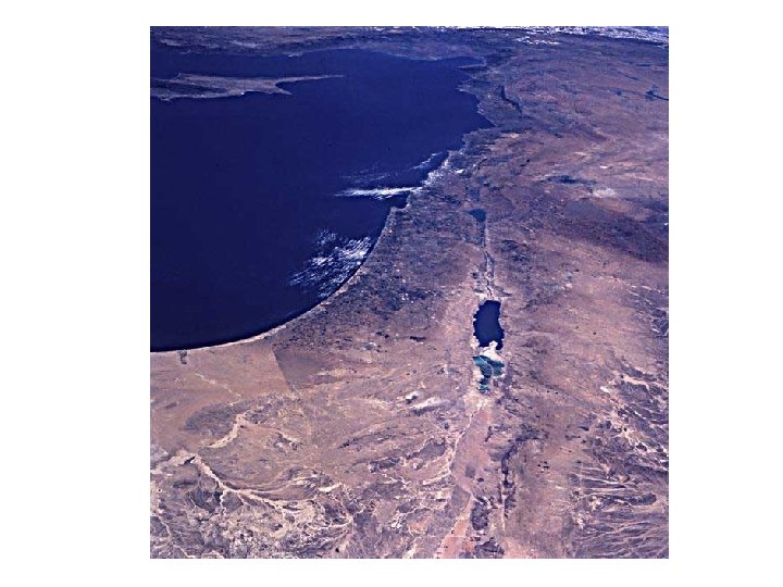 Major Geographic Regions • The Jordan Valley is part of the Syrian-African Rift, which split the earth's crust millions of years ago. Its northern stretches are extremely fertile, while the southern portion is semi-arid. The Jordan River, flowing from north to south through the Rift, descends over 2, 300 feet (700 m. ) in the course of its 186 mile (300 km. ) route. Fed by streams from Mt. Hermon, it runs through the fertile Hula Valley into Lake Kinneret and continues winding through the Jordan Valley before emptying into the Dead Sea.