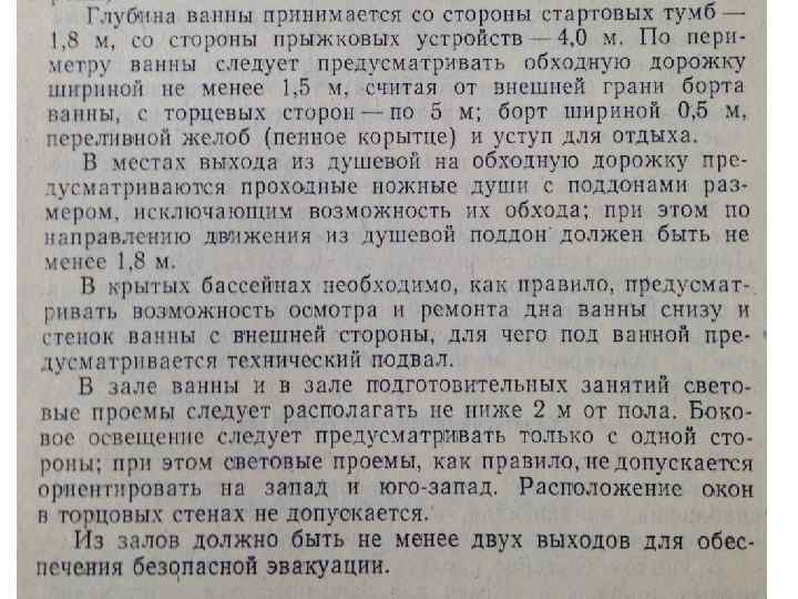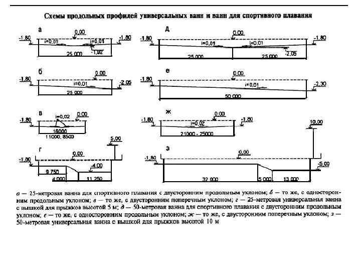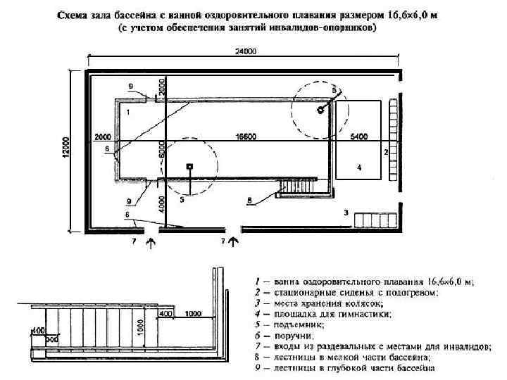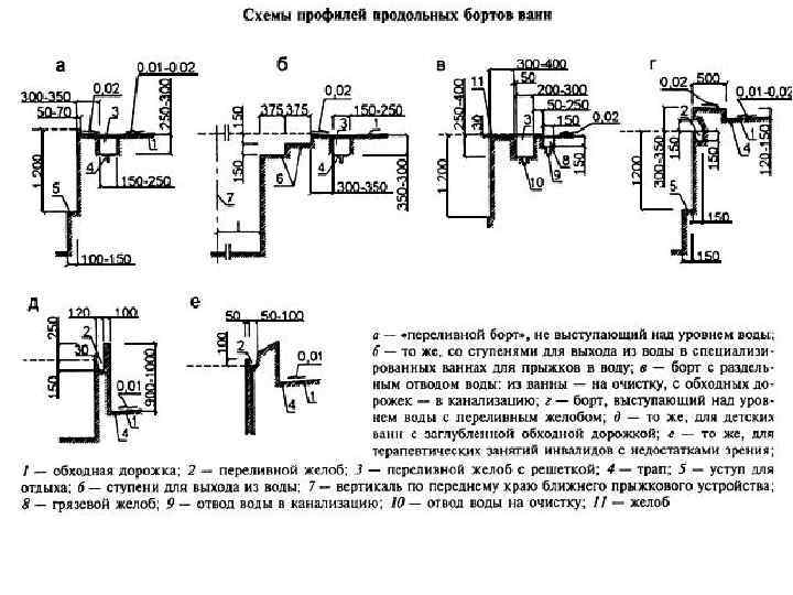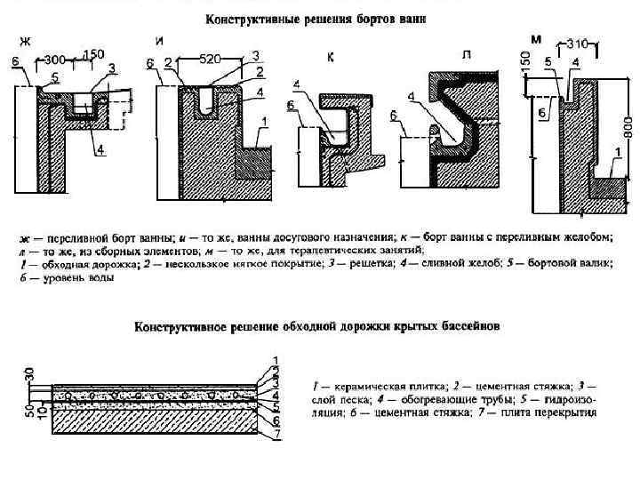 Параметры и оборудование ванн бассейнов