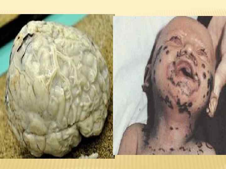 Екіншілік іріңді менингит Бас ми ісінуі Бас миының қабықшаларын басми қабығының іріңді қабынулық ауруы. Этиологиясы: стафилакокк, стрепт ококк, пневмококк, т. б. Таралуы: бір аурудың асқынуы ретінде дамиды, қабынулық, инфекциялық ошақтан ми кабығына тарайды, бас сүйегінің сынуы немесе жарылуы кезінде. Клиникасы: Жедел түрде басталады, әлсіздік, бас ауруы, темп 40 С көтерілуі, Менингеальды синдром дамиды, тырыспа, эпилептикалық ұстамалар гиперестезия, тітіргенгіштік, сопорозды жағдай немесе кома. Диагностикада жұлын-ми сұйықтығының қысымы жоғарылаған, іріңді, лайлы, ақуыз бар. Қант және хлорид деңгейі төмендеген. Бас ми ісінуі – баста, жұлында, жасушааралық тінде сұйықтықтың жиналуынан болады. Этиологиясы: ісіктік, травмадан кейінгі, операциядан кейінгі, токсикалық, қабынулық, ишемиялық, гипертензиялық. Клиникасы: Басішілік гипертензия: бас ауру, бас айналу, көрудің бұзылуы, дезориентация, сөйлеудің бұзылуы, жүрек айну, құсу, ұйқының бұзылуы, эмоционалды жағдай, есінің жоғалуы. Диагностика: неврологиялық зерттеу, МРТ, КТ, қан анализі.