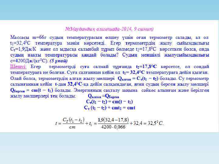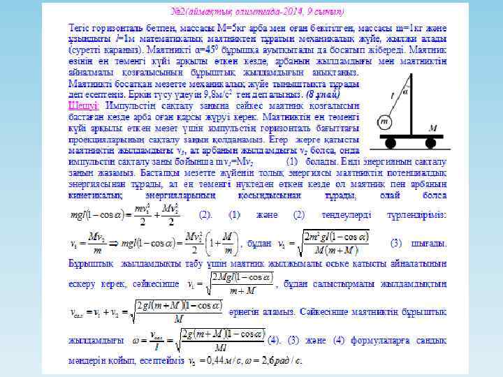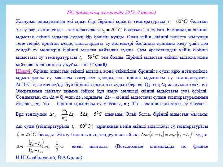 Батыс Қазақстан облысы Казталов ауданы Бостандық орта жалпы білім беретін мектебі «Физика пәнінен олимпиада есептерін шығару тәсілдері» Хамитова Л. М. Бостандық орта жалпы білім беретін мектебінің физикаинформатика пәні мұғалімі