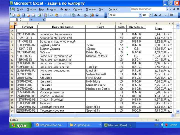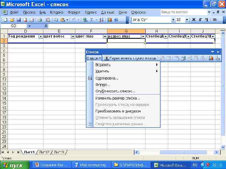 Если таблицу считают базой данных, то: § столбцы списков становятся полями базы данных; § заголовки столбцов становятся именами полей базы данных; § каждая строка списка преобразуется в запись данных.