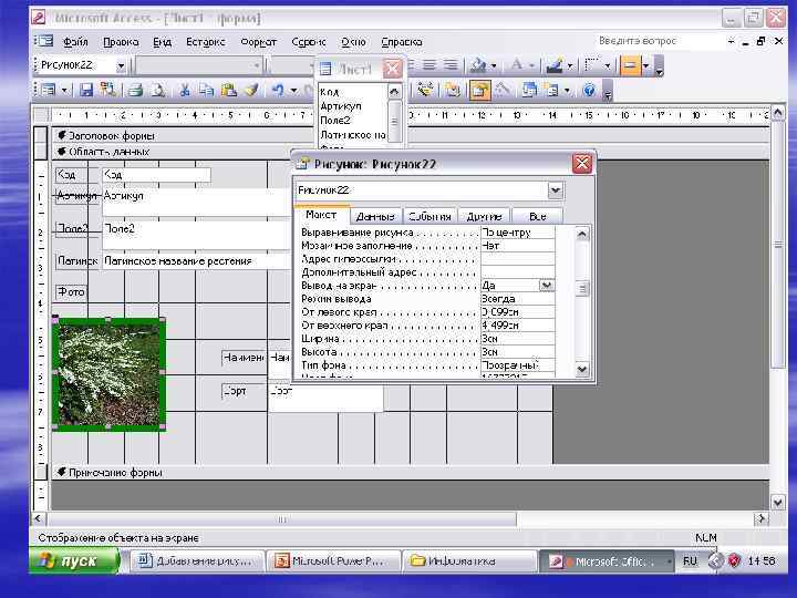 Выполнить одно из следующих действий 1. При добавлении рисунка в форму или отчет нажмите кнопку ОК 2. При добавлении рисунка на страницу доступа к данным нажмите кнопку Добавить 3. Для добавления связанного рисунка на страницу доступа к данным нажмите стрелку рядом с кнопкой Добавить, а затем выберите команду Связать с файлом. Microsoft Access создает рамку рисунка и помещает в нее рисунок