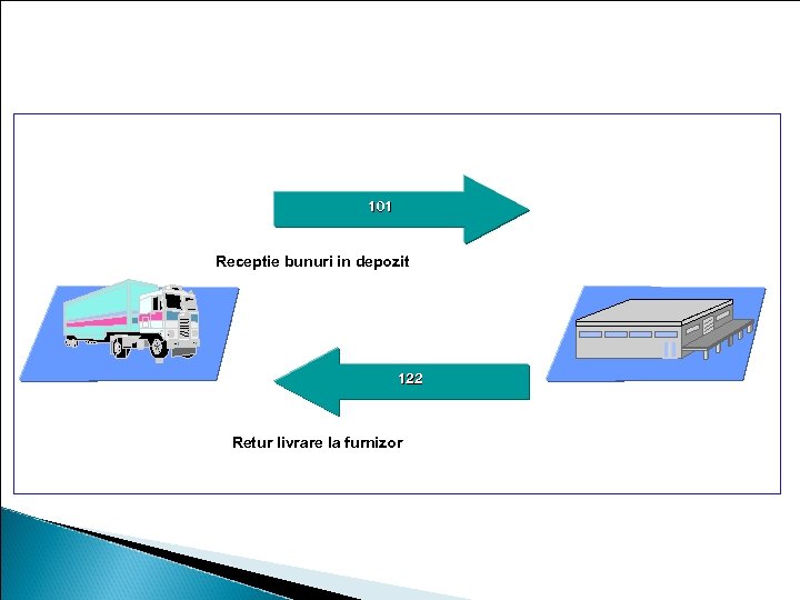 Tipuri de miscari: Exemple 101 Receptie bunuri in depozit 122 Retur livrare la furnizor
