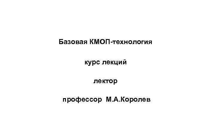 Базовая КМОП-технология курс лекций лектор профессор М. А. Королев
