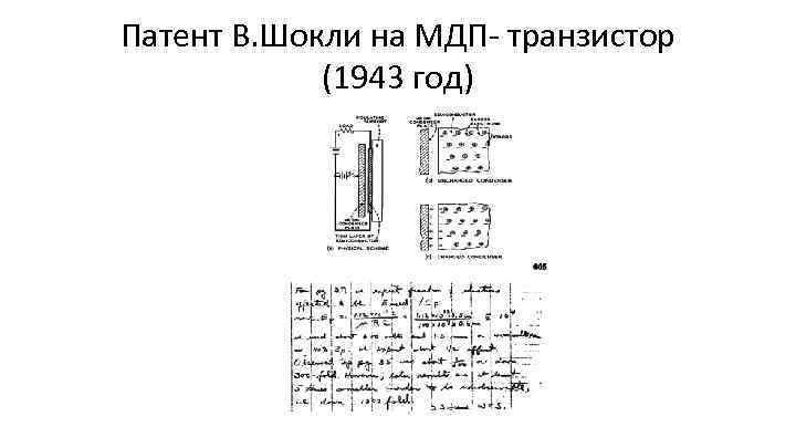 Патент В. Шокли на МДП- транзистор (1943 год)