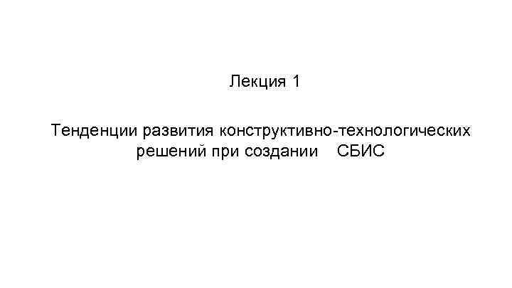 Лекция 1 Тенденции развития конструктивно-технологических решений при создании СБИС