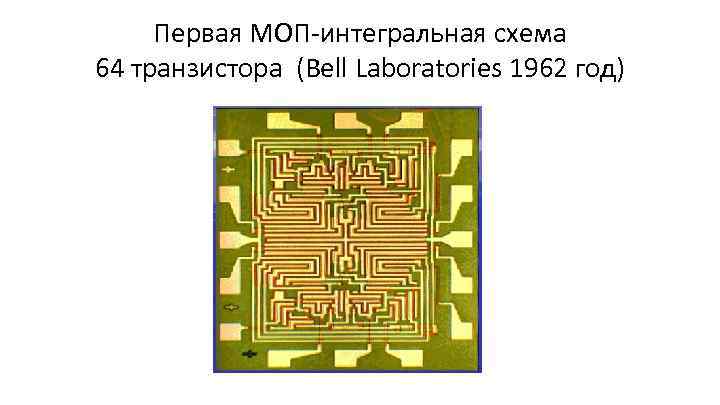 Первая МОП-интегральная схема 64 транзистора (Bell Laboratories 1962 год)