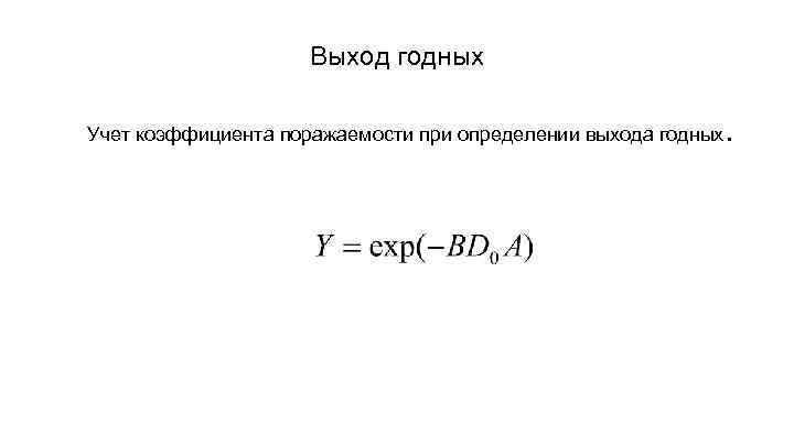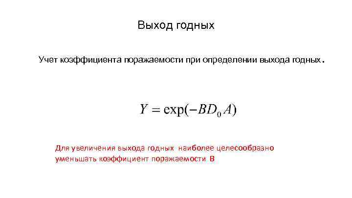 Выход годных Учет коэффициента поражаемости при определении выхода годных. Для увеличения выхода годных наиболее целесообразно уменьшать коэффициент поражаемости В