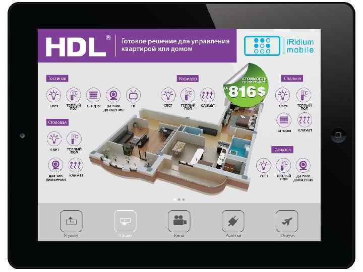 ТВ и Аудиосистема üИК пульты управления от мультимедийных устройств больше не требуются üВсе команды всем устройствам передаёт Сенсор 8 в 1 üКнопки нарисованы в Интерфейсе на планшете/смартфоне