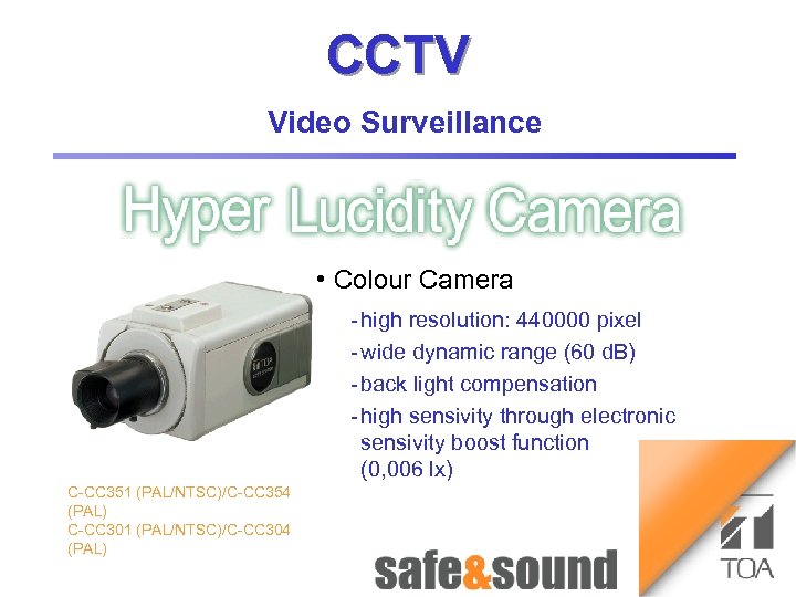 CCTV Time lapse Recorder Bild Aufzug 1 3 Video Surveillance Money Automaton: no photo because of security reasons! VS-900 • Colour Camera high resolution: 440000 pixel wide dynamic range (60 d. B) back light compensation high sensivity through electronic sensivity boost function (0, 006 lx) C CC 351 (PAL/NTSC)/C CC 354 (PAL) C CC 301 (PAL/NTSC)/C CC 304 (PAL) Money Automat 2 4