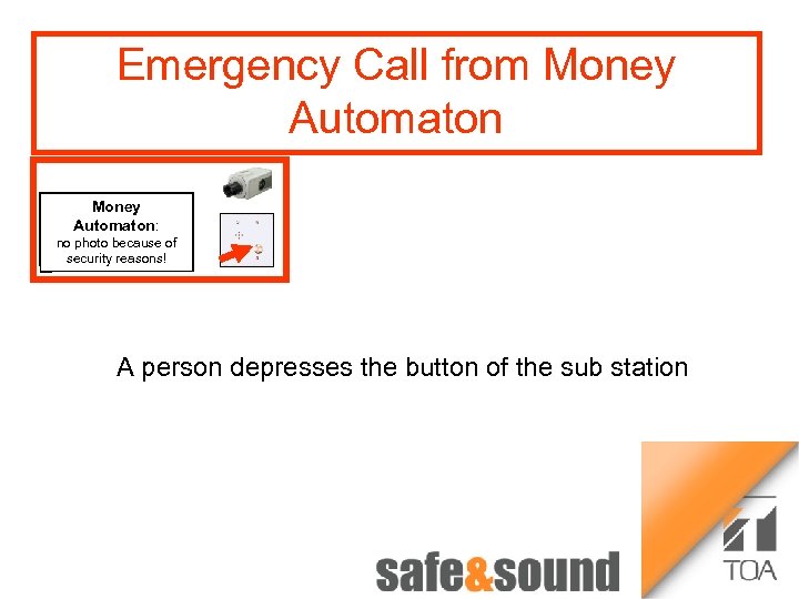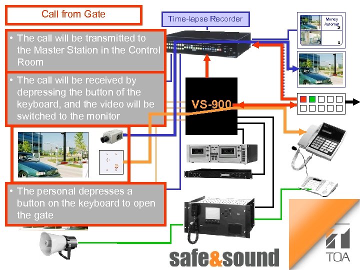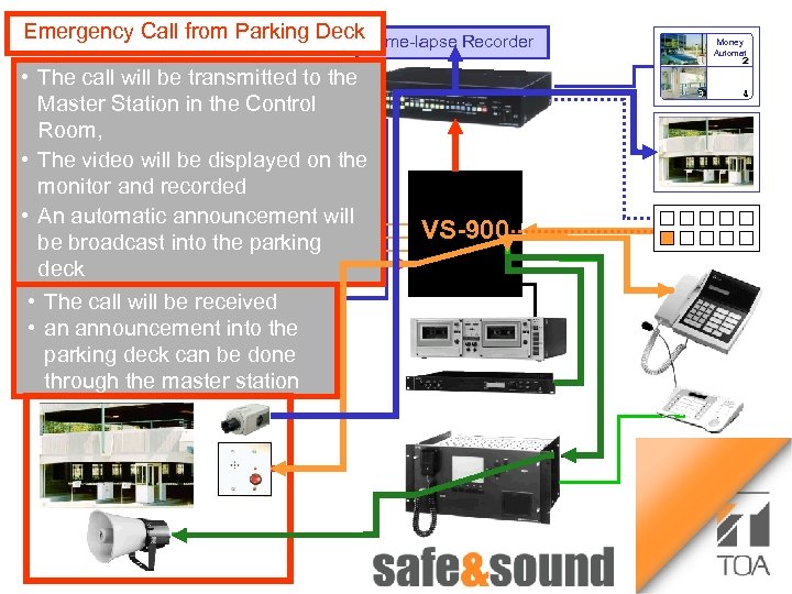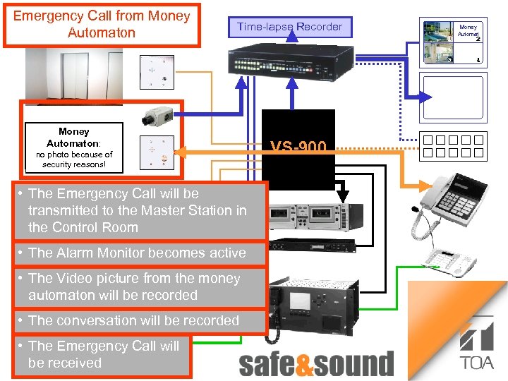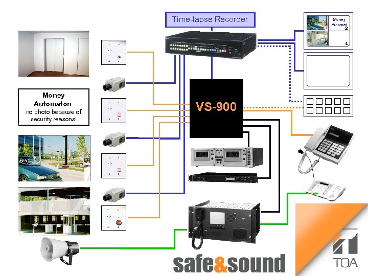 Time lapse Recorder Bild Aufzug Voice Security System Money Automaton: no photo because of security reasons! VS-900 Any Questions to TOA Intercom-, CCTV- and PA-Systems Intercom- CCTV ? Please contact Us ! 1 3 Money Automat 2 4