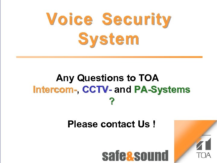 bc Voice Security System Audio-visual Security Systems with TOA Intercom-, PA- and CCTV Components