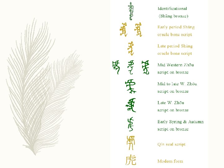 寅 ''Yín'' in Four Different Scripts on Shang–Zhou bronzes Shang Dynasty Late Western Zhou Late Warring States Bird Script, early Warring States