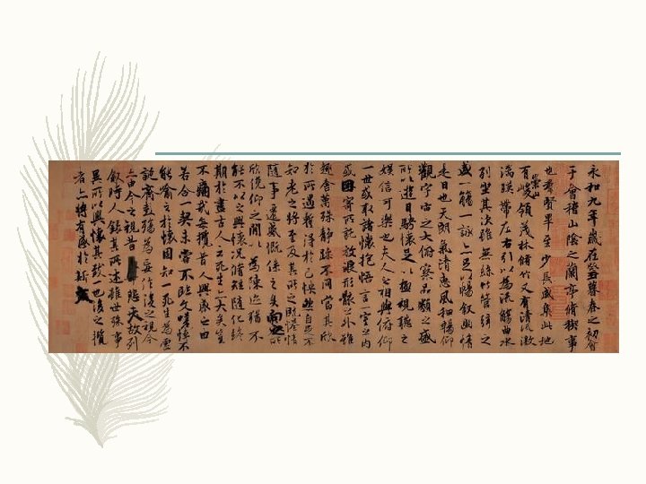 – On March 3 in lunar calendar, 353, Wang Xizhi together with other 41 people held the rite of Xi, a ritual to eliminate and avoid the evil, in Shaoxing. They created prose and poems respectively and collected them together as Lantingji, or The Collection of the Orchid Pavilion. Wang Xizhi created a preface to this collection. The text recorded the beauty of mountains and water surrounding the Orchid Pavilion as well as the pleasure of gathering.