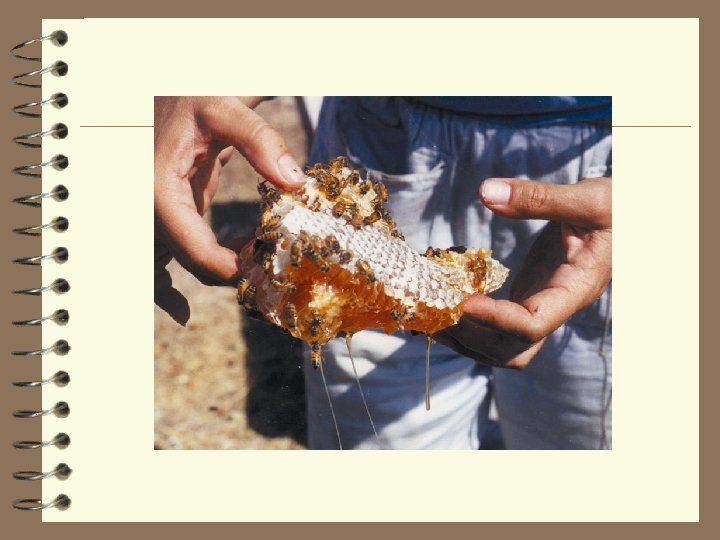 The honeybee as a social insect Superorganism • A Colony. • A Nest. • The individual depends on the colony. • Female dimorphism: one queen and workers. • Workers-Division of labor. • Brood & Queen tending. • Communication. • Food gathering & storage. • Homeostasis (THERMO -REGULATION). • Annual life cycle.