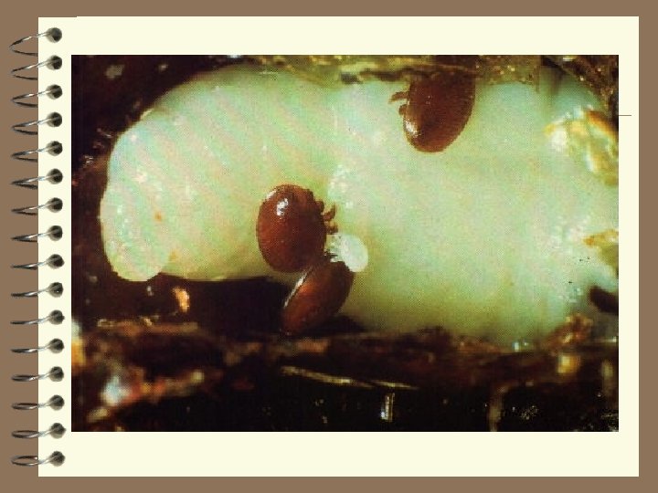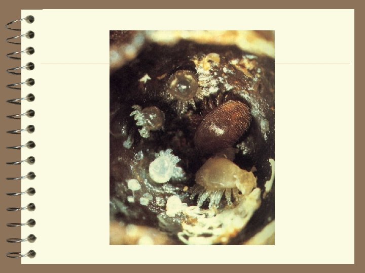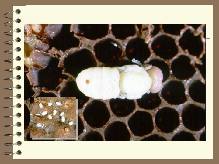 The life cyle of Varroa destuctor 2. Mite enters cell with larva of 5 -5. 5 days 10. Mites transfer through. Adalt bee, with varroa 1. Close contact between bees. feeding on hemlymph 9. Adult females leave cel with emerging bee. Male and immeture stages stay in cell. 3. Mite in larvas food Protonymph 4. Mite feeds on prepupa Female deutonymph 8. Mating within cell Adult male 5. Female lays first egg 60 hours after cell capping. 6. 1 -6 eggs developing from egg to larva eggs at 30 hour intervals Female lays subsequent to protonymph to deutonymph