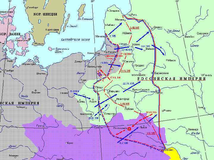 В октябре 1915 г. Восточный фронт стабилизировался на линии Двинск – Браслав – Поставы – Сморгонь – Барановичи – Пинск. До февраля 1918 г. он оставался неизменным. С 18 по 28 марта 1916 г. в районе озера Нарочь была праведена наступательная операция российских войск с целью оттянуть часть германских войск с французского фронта. Российские войска понесли большие потери – 78 тыс. человек убитыми и ранеными. В июле 1916 г. русская армия пыталась прорвать фронт в районе Баранович, но только потеряла 80 тыс. человек.