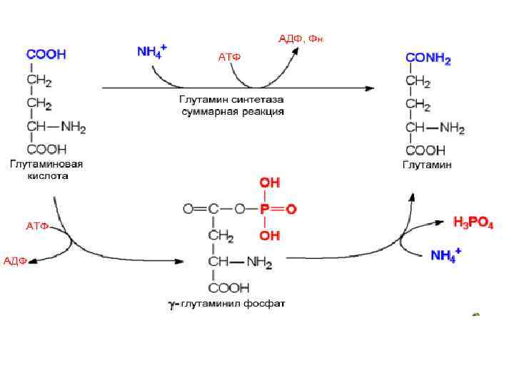 О 2 --- малат ЩУК фумарат АК ГЛУ АСП АМФ α- кетоглу ИМФ Н 2 О NH 3