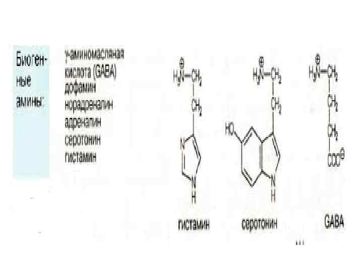 Глутамат, ГАМК, выполняют в нейронах функцию медиаторов. Они хранятся в синапсах и выделяются при поступлении нервного импульса. Переносчики индуцируют или ингибируют потенциал действия, контролируя тем самым возбуждение соседних нейронов.