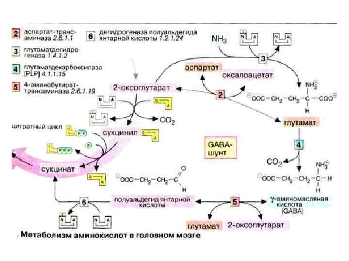 В тканях мозга интенсивно протекают метаболические превращения аминокислот, такие, как окислительное дезаминирование, трансаминирование, модификация боковой цепи и др.