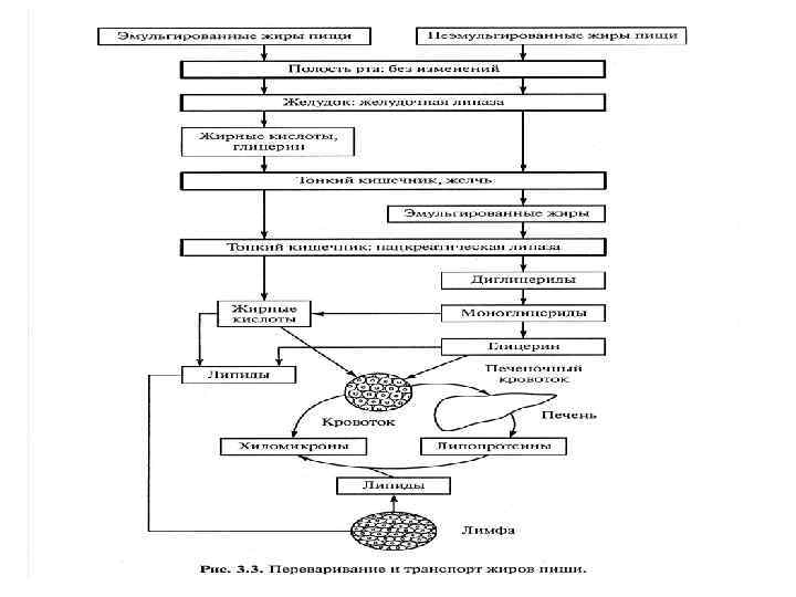 Липиды (жиры и липоиды) • Липиды в организме являются структурными компонентами клеточных и субклеточных биологических мембран; • Являются высококонцентрированным запасным энергетическим материалом. При окислении 1 г жира освобождается 9 ккал энергии; • Жиры обеспечивают от 25 до 40% общей калорийности суточного рациона • Участвуют в синтезе липопротеинов плазмы крови: хиломикронов, ЛПОНП и ЛПНП, ЛПВП; • Липоиды участвуют в синтезе стероидных гормонов, эйкозаноидов и других биоактивных соединений.