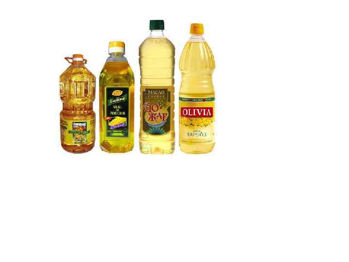 Гигиеническая характеристика растительных жиров (масел) (+) свойства • Имеют практически неограниченную сырьевую базу; • Имеют большой ассортимент. Их получают из семян различных масличных культур, возделываемых по всему миру (лен, подсолнечник, кукуруза, оливки, рапс, соя, хлопчатник, кунжут); • Легко поддаются технологической переработке ( производство маргаринов, майонезов, растительного сала); • Не содержат холестерин, богаты ПНЖК, лецитином, витамином Е • Имеют низкую температуру плавления, легко эмульгируются и усваиваются; (-) свойства • При рафинировании теряют значительную часть лецитина; • При неправильном хранении растительных масел и при жарении полиненасыщенные жирные кислоты легко разрушаются, образуются продукты перекисного окисления и термодеструкции; • При избыточном содержании растительных масел в суточном рационе в организме усиливаются процессы перекисного окисления липидов;