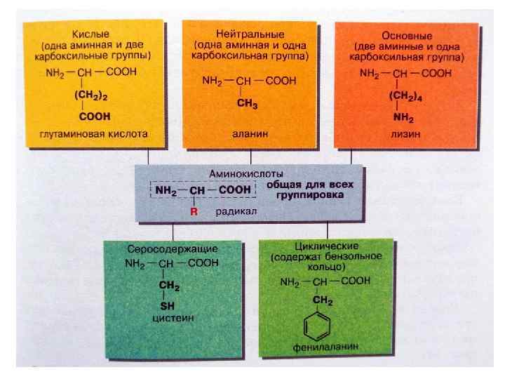 Белки • Белки – нерегулярные полимеры, мономерами для которых являются аминокислоты. • Аминокислоты – органические соединения, имеющие в своем составе: • - аминогруппу –NH 2 (1 или 2), • -карбоксильную группу –СООН (1 или 2), • - радикал. Связанные с одним и тем же атомом углерода