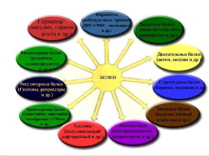 Основные функции белков: § Пластическая – участие в построении новых клеток и тканей, обеспечение роста и развития молодых растущих организмов и регенерация изношенных, отживших клеток в зрелом возрасте; § Защитная – синтезируются антитела, обеспечивающие иммунитет к инфекциям; § Энергетическая – обеспечивают организм необходимой энергией; § Структурная