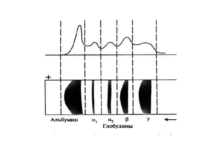 ПРОТЕИНОГРАММА Общий белок 100% (65 - 85 г/л) • альбумины 55 -85% (35 - 50 г/л) • α 1 -глобулины 3 -6% (1 – 4 г/л) α 1 -антитрипсин, α 1 -серомукоиды, АФП • α 2 -глобулины 7 -10% (4 – 12 г/л) α 2 -макроглобулин, гаптоглобин церулоплазмин • β-глобулины 8 -12% (5 – 11 г/л) трансферрин, гемопексин (фибриноген), СRP • γ -глобулины 13 -19% (5 – 16 г/л)