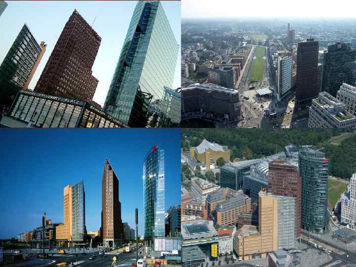 Mehr als alle anderen Bauprojekte für das neue Berlin steht der Potsdamer Platz im Rampenlicht. Der kühne Plan, aus dem Nichts ein Stadtzentrum zu erschaffen, ist nach zehn Jahren Bauzeit vollendet Der amerikanischen Entertainment-Architektur setzt die Daimler-City europäisches Steingut entgegen. Im Daimler-Areal findet man alles, was nach Metropole klingt: ein Musicaltheater, ein Casino, ein Imax-Kino, Discos, eine dreistöckige Einkaufspassage (Arcaden), ein Nobelhotel von Hyatt, Luxusapartments, Bars, Restaurants, Fastfood-Läden – und an der Uferstraße des Landwehrkanals die Zentrale der Daimler. Benz-Tochter Debis, der Bauherrin der neuen City. Am nördlichen Rand des Platzes baute der Investor Beisheim mit dem Ritz-Carlton Berlins neuestes Nobelhotel im Chicagoer Art-deco-Stil