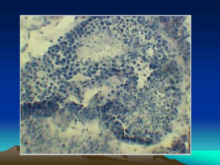 Онкопатология среди пациентов с азооспермией 1. 2. 3. 4. Двухсторонняя лейдигома Семинома ( в низведённом яичке ) Тератома ( в низведённом яичке ) Наличие в анамнезе удаления яичка по поводу опухоли с ПХТ. – 7 ( в трёх случаях обоих )
