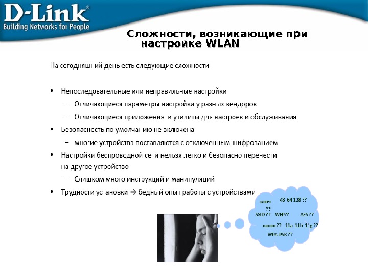 Outdoor&Enterprise 802. 11 g 54 Мбит / сек DWA-510 DWA-110 DWL-2100 APDWA-610 DAP-1150 DIR-400 DWA-120 DWA-520 802. 11 g + 108 Мбит / сек DWL-G 550 DWL-3260 AP DAP-3220 DWL-2700 APСравнительная таблица линеек