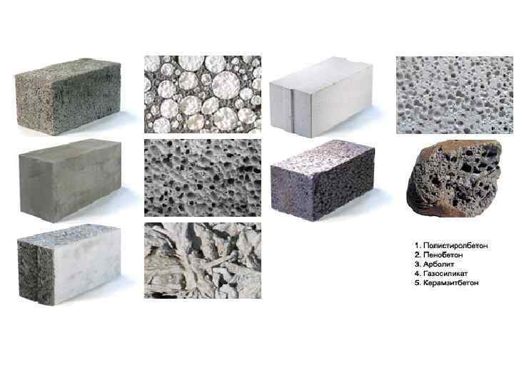 ЛЕГКИЕ БЕТОНЫ Заполнители: Искусственные -керамзит, аглопорит, перлит, шлаковую пемзу Естественные - туф, пемзу. Легкие бетоны делятся на три вида: Поризованный легкий бетон Крупнопористый легкий бетон Ячеистый бетон