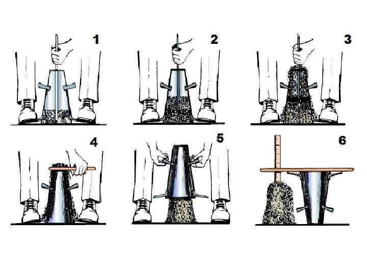 Удобоукладываемость бетонной смеси Подвижность (П, см) характеризуется осадкой стандартного конуса, отформованного из испытуемой бетонной смеси.