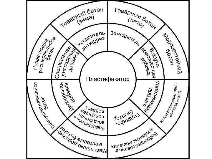Химические добавки -Пластификаторы - Суперпластификаторы -Гиперпластификаторы - Противоморозные добавки -Гидроизоляционные -Воздухововлекающие - Замедлители схватывания -Ускорители твердения -Пигменты -Армирующие добавки