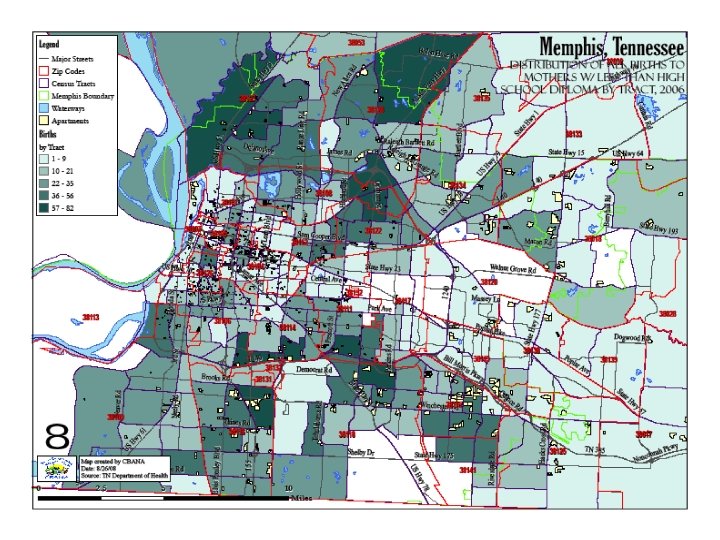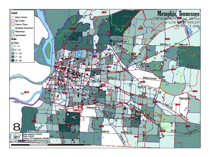 Key Sources • Populations of Color in Tennessee: Health Status Report. Tennessee Department of Health Office of Policy, Planning, and Assessment and Office of Minority Health. Kenneth Robinson, et. al. 2007. • Center for Community Building and Neighborhood Action: analysis of birth and infant mortality and other indicators for Memphis and Shelby County. Ongoing.
