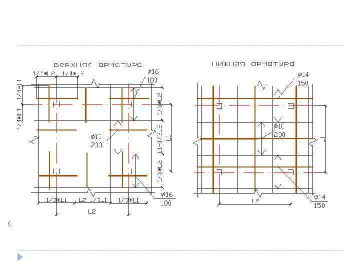Примеры армирования плит Расход стали обычно колеблится от 12 до 95 кг